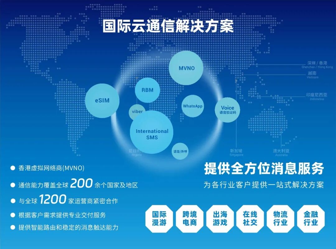 梦网科技推出的数智云通信解决方案,以“富媒体焕新体验+全链路提效赋能+全球化业务深度覆盖”为核心,为不同行业提供定制化通信服务。